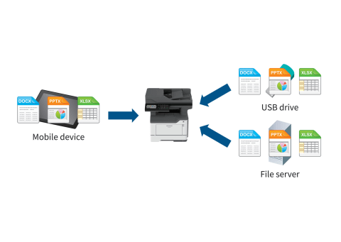 Print common Microsoft® Office files without using a PC. With this MFD, you can print a Word, Excel®, or PowerPoint® file directly from a mobile device, USB drive, or file server.